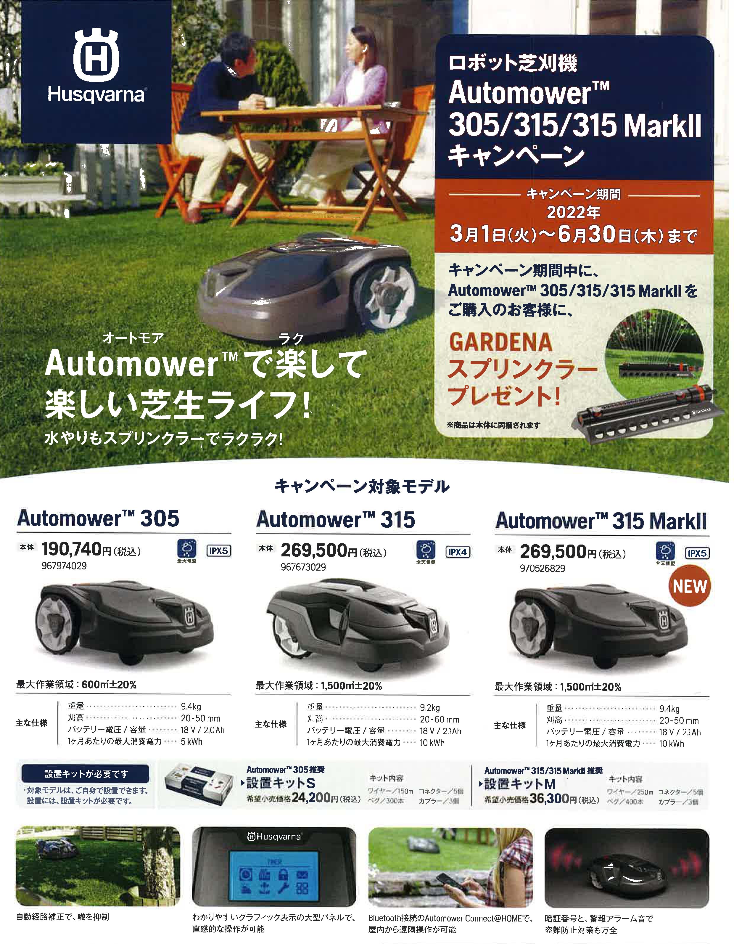315 Mキット付き セミプロ用 大特価で激安 ハスクバーナ ロボット芝刈り機 設置キット無し 全自動芝刈り作業可能 315 芝刈り機 草刈機 草刈り機 不動産管理物件管理や果樹園下草刈り等 雑草刈にも最適 常時芝地や雑草地を綺麗な状態に保てます Southwestne Com